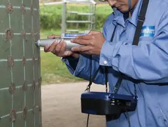 楼板测厚仪的测厚原理是基于电磁波衰减的动力学原理设计而成的,虽然测厚时需两个可测面(楼板、墙体均为两个可测面),但测厚精度高,可达到±2%,且无需率定,完成一个测点只需2—3分钟。